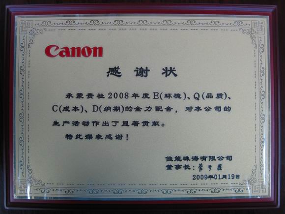 ??????? 參加會(huì )議的40家供應商中,機械、鏡片、輔材企業(yè)20家,電氣企業(yè)20家,佳能珠海對此40家企業(yè)頒發(fā)了感謝狀。佳能珠海有限公司特別表彰了2家最佳供應商。